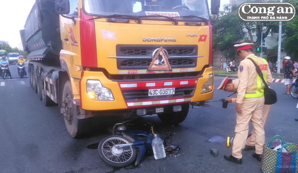(Cadn.com.vn) - ĐÀ NẴNG- 7 giờ 15 ngày 14-7, xe tải ben BKS 43C-036.17 (không rõ người điều khiển) lưu thông trên đường Ngô Quyền, khi đến khu vực ngã ba Ngô Quyền - Chu Huy Mân (P. Mân Thái, Q. Sơn Trà) thì va chạm với xe máy BKS 43H2-8274 do người phụ nữ (không rõ tên) điều khiển. Hậu quả, người phụ nữ điều khiển xe máy bị thương nặng được đưa đến bệnh viện cấp cứu.