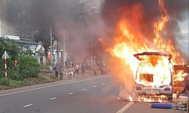 LÂM ĐỒNG- Khoảng 16 giờ ngày 19-10, ô-tô mang biển kiểm soát TPHCM lưu thông trên QL20 hướng từ Đà Lạt về TPHCM, khi chạy qua đoạn thuộc địa phận xã Đình Lạc, H. Di Linh bất ngờ bị cháy từ phía sau xe. Tài xế đã kịp thời dừng xe báo cho người đi cùng trên xe thoát ra ngoài an toàn; đồng thời, hô hoán người dân xung quanh dùng bình cứu hỏa mini đến ứng cứu dập lửa. May mắn vụ hỏa hoạn xe không gây thiệt hại về người. Nguyên nhân vụ việc đang được tiếp tục điều tra, làm rõ.