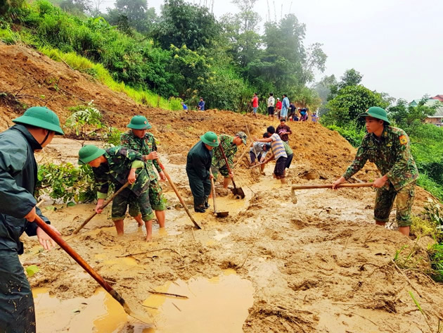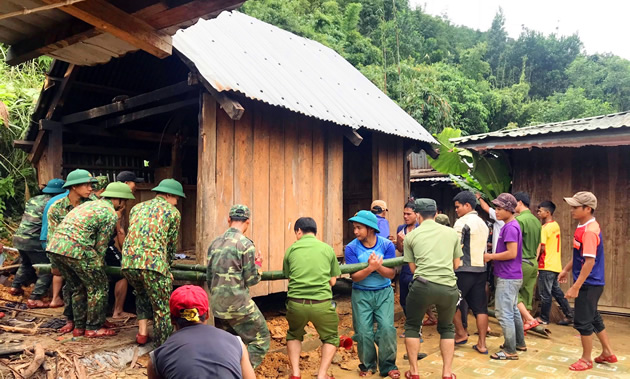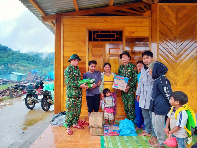 Mưa lớn đã làm cho nhiều tuyến đường giao thông trọng yếu trên biên giới 2 huyện Nam Giang và Tây giang bị chia cắt, làm ách tắc việc đi lại của người dân gặp muôn vàn khó khăn và nhiều nhà người dân có nguy cơ bị sập và lũ cuốn trôi. Trước tình hình trên, Bộ Chỉ huy BĐBP tỉnh đã điều động gần 100 CBCS của các Đồn Biên phòng đóng chân trên địa bàn khẩn trương hỗ trợ tích cực người dân chèn chống nhà cửa, di dời tài sản, gia súc, gia cầm của đồng bào đến nơi cao ráo để đề phòng nước lũ dâng cao và sạt lở núi. Đồng thời, cùng với nhân dân địa phương và lực lượng dân quân tại chỗ có mặt kịp thời tại các điểm sạt lở để san lấp thông tuyến cho bà con đi lại, đảm bảo cho bà con không thiếu nhu yếu phẩm trong mùa mưa lũ.