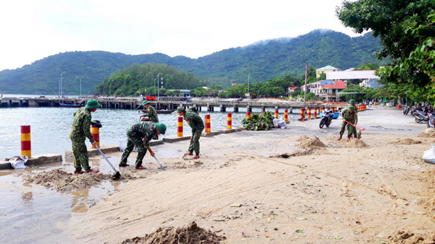 Đồn Biên phòng Cù Lao Chàm cùng với địa phương sửa sang lại đường giao thông huyết mạch sau bão lũ đảm bảo cho bà con đi lại trên xã đảo Tân Hiệp (TP Hội An). |