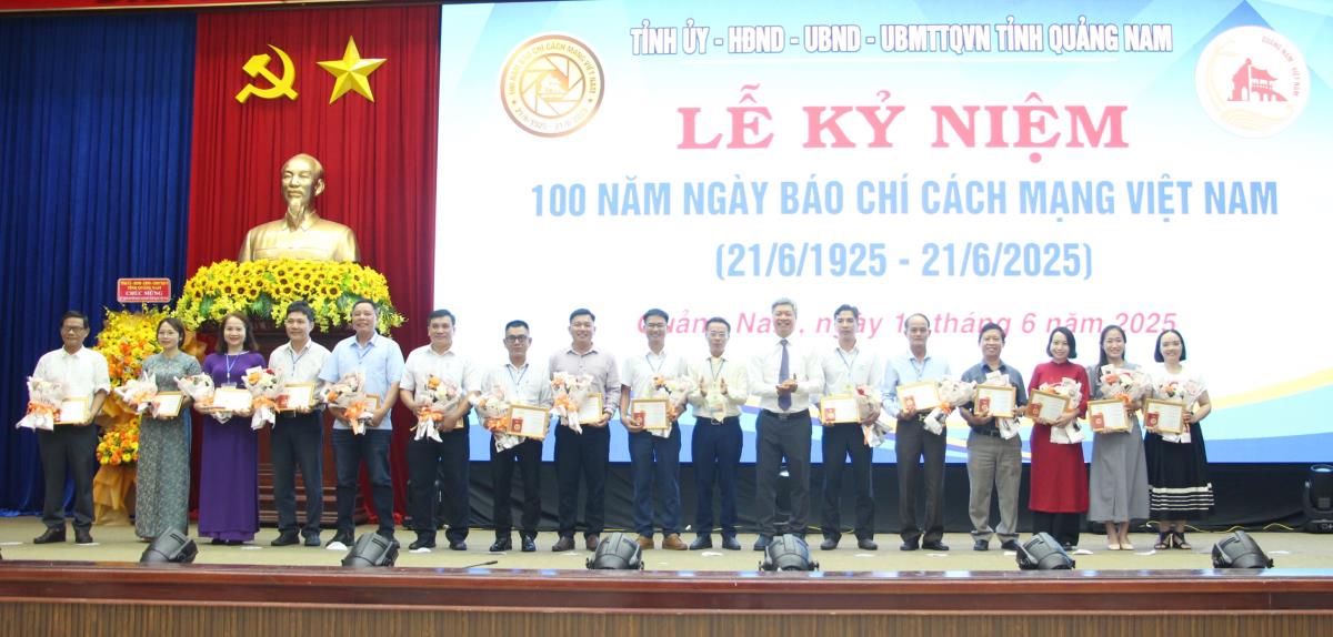 Chiều 16-6, Tỉnh ủy, HĐND, UBND, Ủy ban MTTQ Việt Nam tỉnh Quảng Nam long trọng tổ chức Lễ kỷ niệm 100 năm ngày Báo chí cách mạng Việt Nam 21-6 (1925-2025) nhằm ôn lại truyền thống của ngành báo chí nước nhà và bày tỏ tình cảm đối với các thế hệ những người làm báo đã có nhiều đóng góp trong quá trình xây dựng và phát triển tỉnh Quảng Nam.