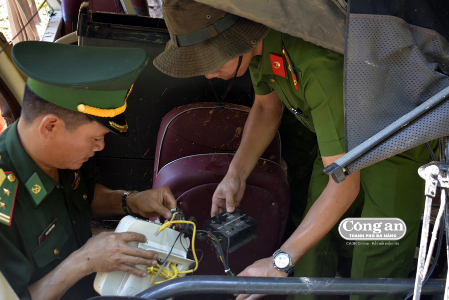 Lực lượng chức năng thu giữ thiết bị lưu hình ảnh camera của xe khách phục vụ công tác điều tra. |