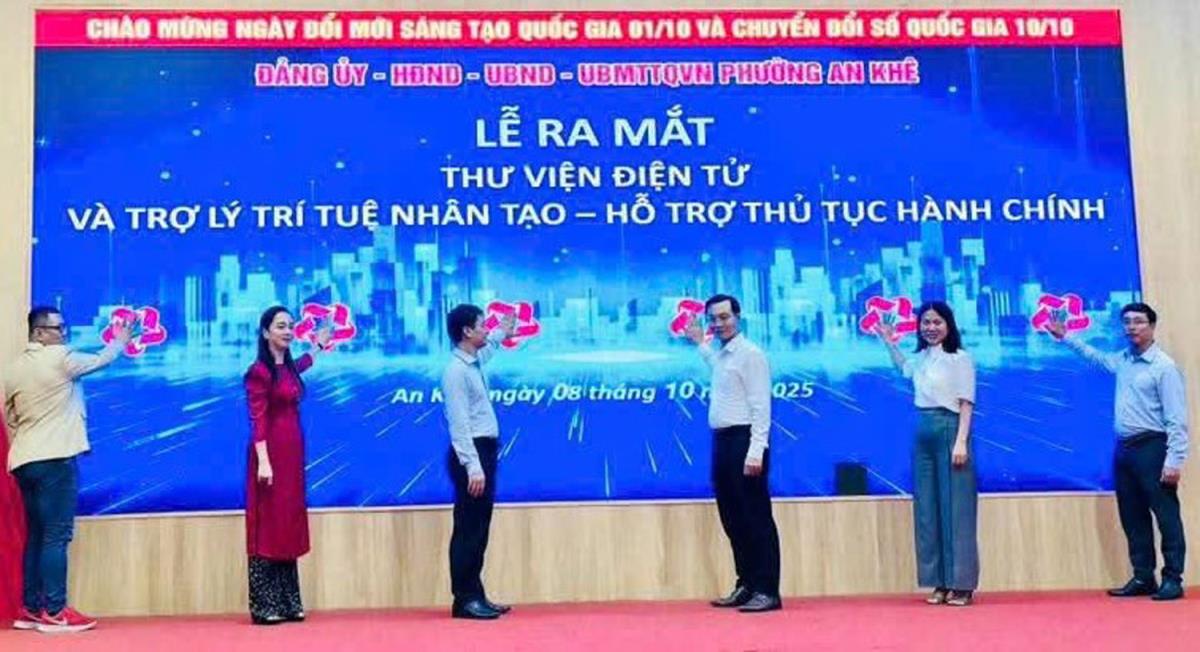 Cũng trong Ngày hội CĐS này, tại phường An Khê đã chính thức ra mắt: Thư viện số phường An Khê và Chatbox AI hỗ trợ thủ tục hành chính, bộ công cụ hỗ trợ đào tạo AI; giới thiệu Thư viện số phường An Khê và Chatbox AI hỗ trợ thủ tục hành chính, bộ công cụ hỗ trợ đào tạo AI; giới thiệu về các ứng dụng trên nền tảng số TP Đà Nẵng. Tuyên truyền sử dụng phần mềm EtaxMobile; trao thưởng kết quả thi trực tuyến tìm hiểu Nghị Quyết 57. Chủ tịch UBND phường An Khê Ngô Ngọc Hậu cho biết, thời gian qua, địa phương đã thành lập 226 Tổ công nghệ số cộng đồng được duy trì và phát huy hiệu quả, “đi từng ngõ, gõ từng nhà, hướng dẫn từng người dân” cài đặt, sử dụng ứng dụng VNeID, Đà Nẵng Smart City, thanh toán điện tử, tạo tài khoản dịch vụ công và hướng dân thực hiện dịch vụ công trực tuyến. 100% hồ sơ hành chính của phường được xử lý trên môi trường mạng… được người dân thực hiện trực tuyến mức độ 3, 4, giảm đáng kể thời gian và chi phí đi lại. Cùng đó, đẩy mạnh tuyên truyền về thanh toán không tiền mặt, hóa đơn điện tử, học tập số, đăng ký khám chữa bệnh trực tuyến. Các tổ dân phố, đoàn thể, trường học, doanh nghiệp nhỏ trên địa bàn đã chủ động áp dụng công nghệ số sử dụng các kênh thông tin số, qua đó góp phần nâng cao nhận thức và chống lại thông tin sai sự thật trong quản lý, kinh doanh, góp phần xây dựng phường văn minh, hiện đại, số hóa.