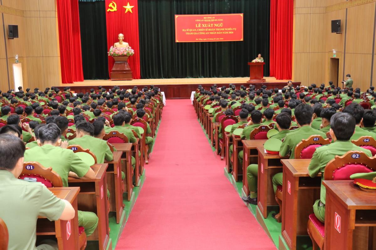 Sáng 25-2, Công an TP Đà Nẵng tổ chức Lễ xuất ngũ đối với hạ sĩ quan, chiến sĩ nghĩa vụ hoàn thành nghĩa vụ tham gia Công an nhân dân (CAND) năm 2026. Đại tá Nguyễn Xuân Hoàng- Phó Giám đốc Công an thành phố dự và chỉ đạo buổi lễ. Tham dự còn có lãnh đạo các phòng nghiệp vụ, Công an các xã, phường và 492 chiến sĩ nghĩa vụ.