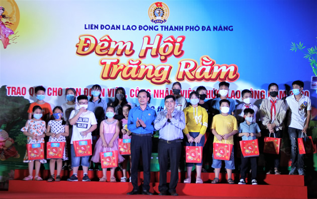Đà Nẵng - Tối 30-9, Liên đoàn Lao động (LĐLĐ) thành phố tổ chức "Đêm hội Trăng rằm" năm 2020 cho con đoàn viên, CNVCLĐ nhằm động viên, khích lệ tinh thần cũng như tạo điều kiện để các em đón một đêm Trung thu thật vui và ấm áp. Theo đó, LĐLĐ đã tổ chức các hoạt động văn nghệ, múa lân cho trẻ em. Đồng thời, trao 1.500 suất quà, mỗi suất 300 ngàn đồng cho các con đoàn viên, CNVCLĐ có hoàn cảnh khó khăn. Ngoài ra, các Công đoàn cơ sở cũng trao gần 2.000 suất quà Trung thu cho con đoàn viên, CNVCLĐ. Tổng kinh phí cho đợt trao quà Trung thu trị giá gần 1 tỷ đồng.