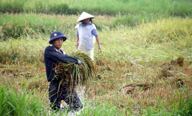 Giúp dân gặt lúa chạy lũ.