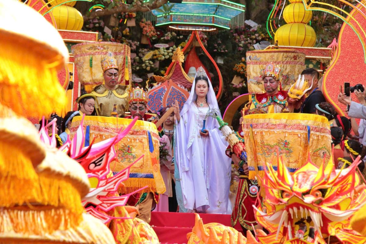 Điểm nhấn của chương trình là phần hóa trang và rước tôn tượng Bồ Tát Quán Thế Âm. Hình tượng Quán Âm được tái hiện với dáng vẻ uy nghi, biểu trưng cho tinh thần từ bi, cứu khổ cứu nạn. Cùng tham gia đoàn rước còn có các hóa thân Tiểu đồng, chư vị Bồ tát, Tiên nữ và Tứ Thiên Vương, tạo nên không gian lễ hội rực rỡ, giàu tính biểu tượng và thu hút sự quan tâm của đông đảo người tham dự.
