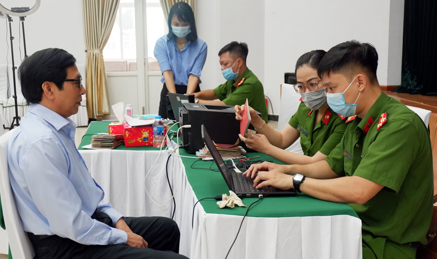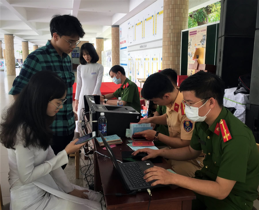 Tổ lưu động làm CCCD cho học sinh Trường THPT Phan Châu Trinh. |
