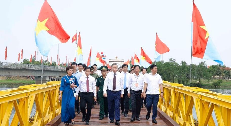 Tổng Bí thư, Chủ tịch nước Tô Lâm dự lễ. Cùng dự có các đồng chí Ủy viên Bộ Chính trị: Nguyễn Duy Ngọc, Bí thư Trung ương Đảng, Trưởng ban Tổ chức Trung ương; Lê Minh Trí, Bí thư Trung ương Đảng, Trưởng ban Nội chính Trung ương; Đại tướng Phan Văn Giang, Phó Thủ tướng Chính phủ, Bộ trưởng Bộ Quốc phòng; Đại tướng Lương Tam Quang, Bộ trưởng Bộ Công an; các đồng chí Ủy viên Trung ương Đảng, lãnh đạo Chính phủ, Quốc hội, lãnh đạo ban, bộ, ngành, đoàn thể Trung ương, lãnh đạo Bộ Tư lệnh Quân khu 4 và tỉnh Quảng Trị, cùng đông đảo nhân dân, du khách trong và ngoài tỉnh.
