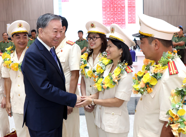 Trong không khí thân tình, ấm áp, thay mặt lãnh đạo Đảng, Nhà nước, Tổng Bí thư Tô Lâm nhiệt liệt hoan nghênh, chúc mừng sự trưởng thành, phát triển của lực lượng CAND, của phong trào thi đua "Vì an ninh Tổ quốc" thời gian qua, gắn với sự phát triển của đất nước cũng như lực lượng CAND.