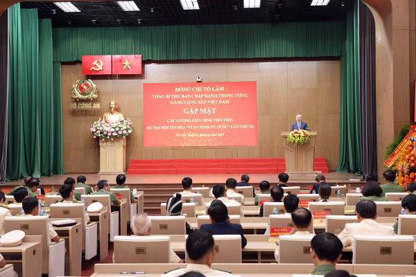 Theo Tổng Bí thư Tô Lâm, cuộc gặp mặt hôm nay cho thấy, rất nhiều chiến công, thành tích, hành động đẹp của CBCS CAND trên tất cả các lĩnh vực. Các báo cáo rất điển hình, tiên tiến, là dịp để Bộ Công an đánh giá lại kết quả phong trào, tự hào với những chiến công, thành tích; cũng là dịp để các đại biểu trao đổi những kinh nghiệm, suy nghĩ, tình cảm, hành động, từ đó làm tốt hơn nữa công việc của mình, đóng góp tích cực vào phong trào thi đua.