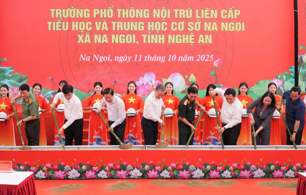 Sáng 11-10, Tổng Bí thư Tô Lâm cùng lãnh đạo các ban, bộ, ngành Trung ương đã dự lễ khởi công xây dựng Trường Phổ thông nội trú liên cấp Tiểu học và THCS Na Ngoi, xã biên giới Na Ngoi (Nghệ An).
