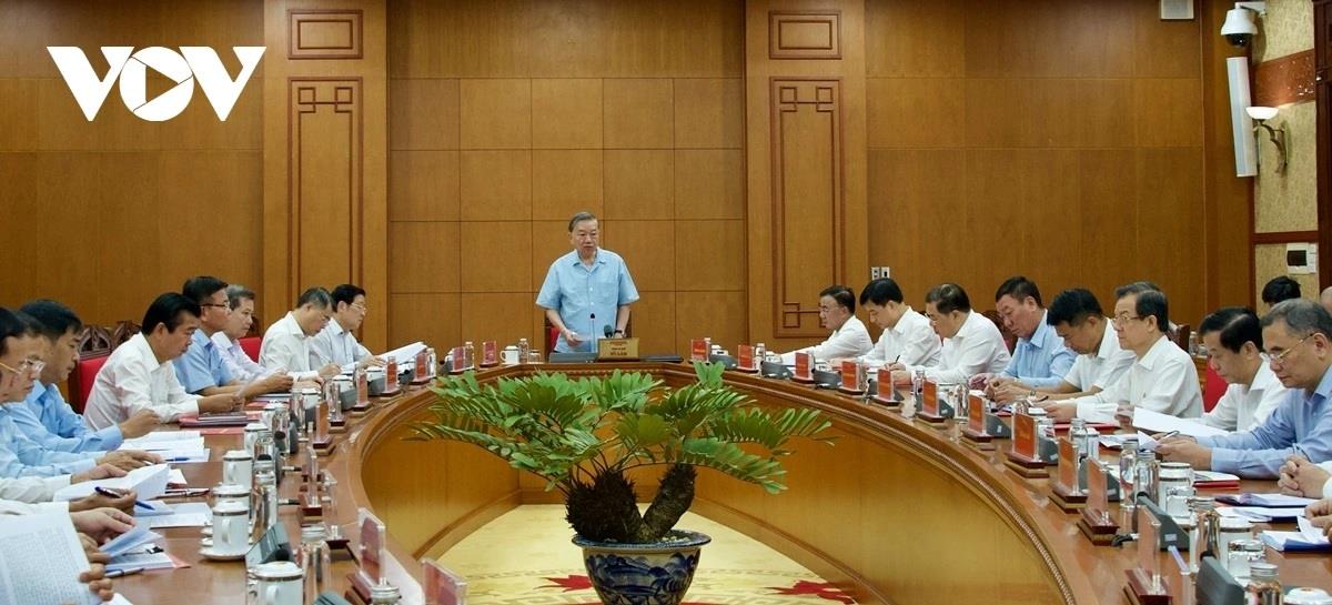 Tổng Bí thư Tô Lâm nhấn mạnh tập trung chỉ đạo xử lý dứt điểm các công trình, dự án chậm tiến độ, tồn đọng kéo dài, nguy cơ thất thoát, lãng phí. Nhất là hoàn thành tháo gỡ khó khăn, vướng mắc, đưa vào khai thác, sử dụng trong năm 2025 đối với 11 dự án.