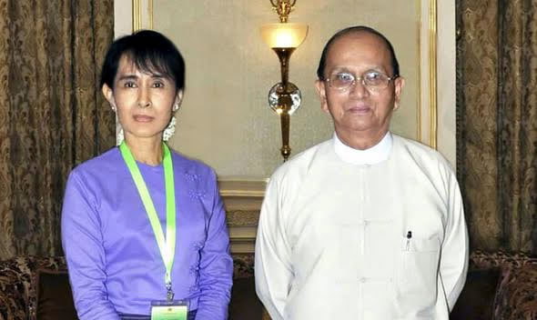| Tổng thống Thein Sein (phải) gặp bà Suu Kyi hồi năm 2011. Ảnh: Reuters |