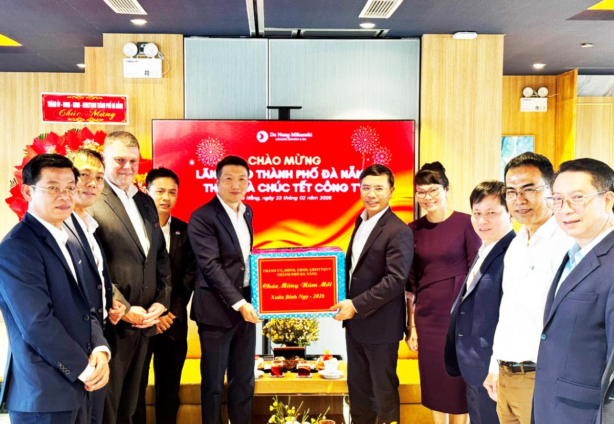 Chủ tịch UBND TP Phạm Đức Ấn gửi lời chúc sức khỏe, hạnh phúc, mã đáo thành công đến Ban lãnh đạo và CBCNV của các đơn vị thuộc Tập đoàn Sun Group, Tập đoàn FPT tại Đà Nẵng và Công ty Mikazuki Đà Nẵng; chúc các doanh nghiệp này hoàn thành vượt mức các chỉ tiêu, kế hoạch sản xuất kinh doanh, đầu tư năm 2026 như đã đề ra.