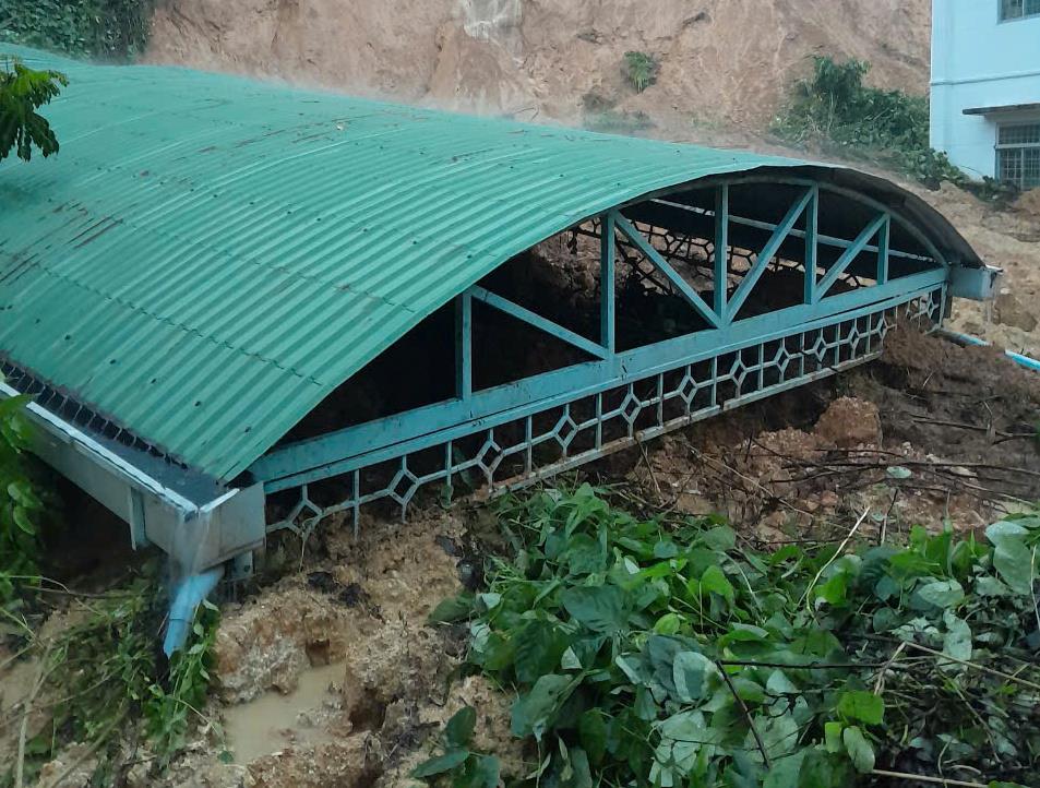Tại hiện trường, lượng đất đá từ sườn núi phủ kín khuôn viên trạm y tế, làm sập hoàn toàn khu nhà giữ xe và mái che. Rất may, vụ sạt lở không gây thương vong về người, song khiến cơ sở vật chất bị hư hỏng nặng.