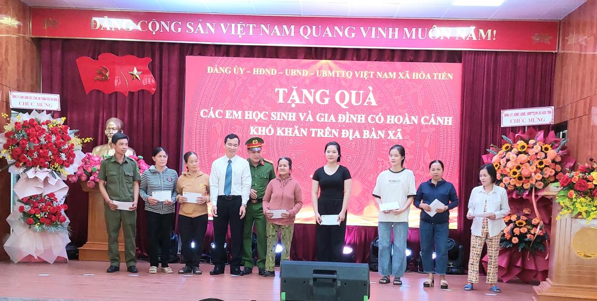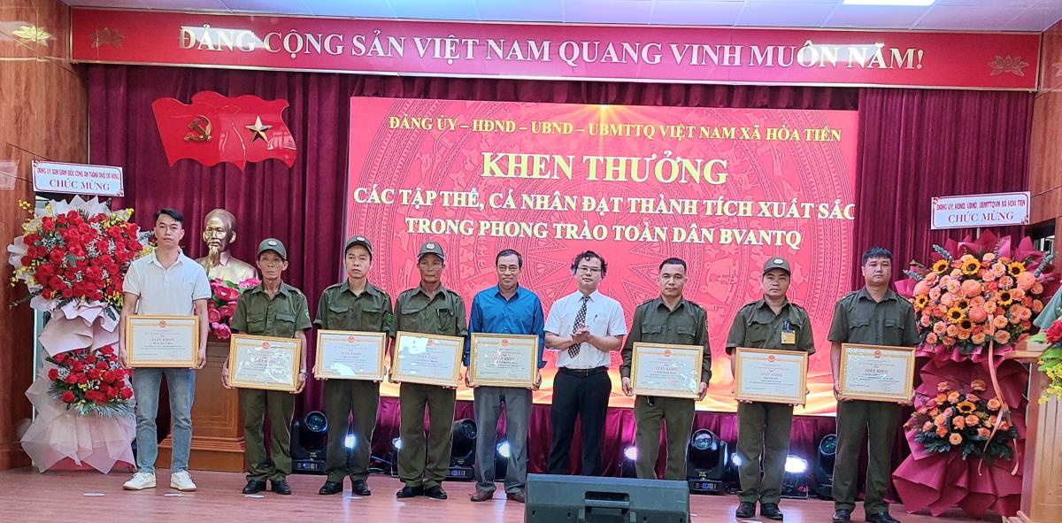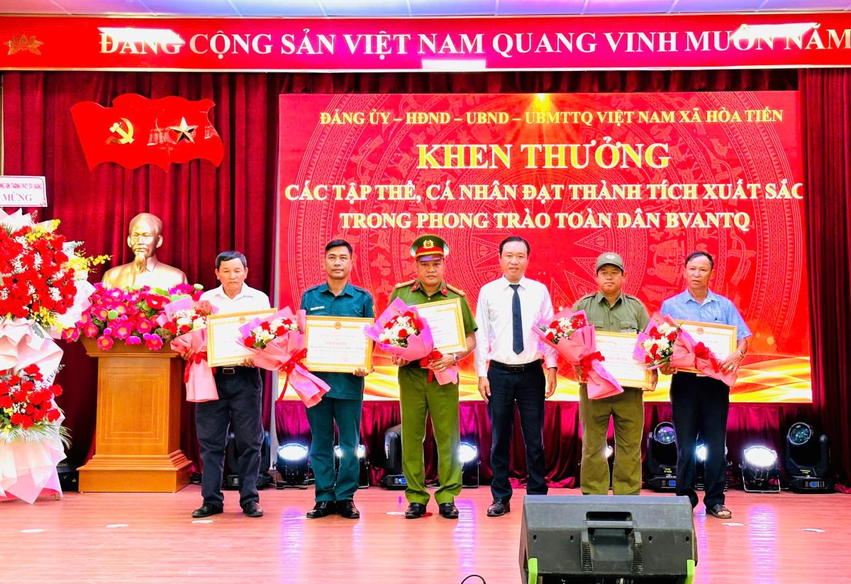 Nhằm ghi nhận những kết quả đạt được, động viên phong trào TDBVAN Tổ quốc, Giám đốc Công an TP Đà Nẵng đã khen thưởng cho tập thể nhân dân và cán bộ xã Hòa Tiến và 1 cá nhân là ông Đặng Quang Hùng -Phó Chánh Văn phòng HĐND và UBND xã Hòa Tiến. Chủ tịch UBND xã Hòa Tiến khen thưởng cho 5 tập thể, trong đó có Công an xã Hòa Tiến và 15 cá nhân có thành tích xuất sắc trong phong trào. Cũng trong dịp này, Công an Hòa Tiến phối hợp với UBMTTQ Việt Nam xã, các đoàn thể, tổ chức, mạnh thường quân đã có những món quà ý nghĩa gửi đến các hộ gia đình, các em học sinh có hoàn cảnh khó khăn trên địa bàn xã.