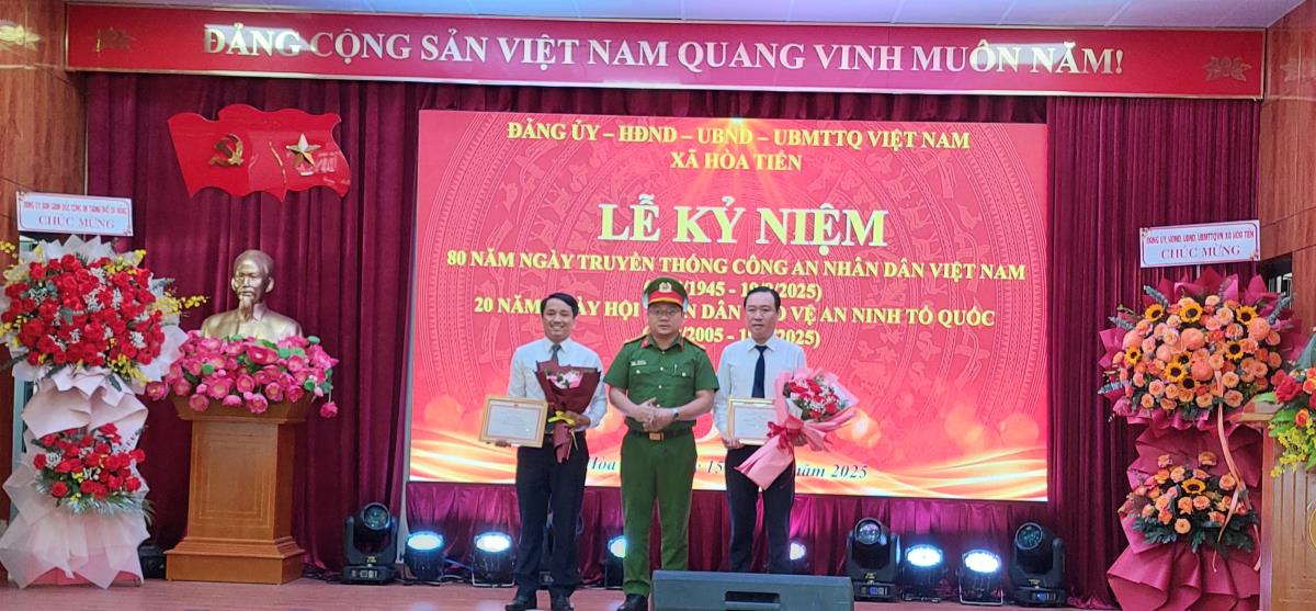 Trang trọng Lễ kỷ niệm 80 năm Ngày truyền thống Công an nhân Việt Nam và 20 năm Ngày hội toàn dân bảo vệ an ninh Tổ quốc xã Hòa Tiến