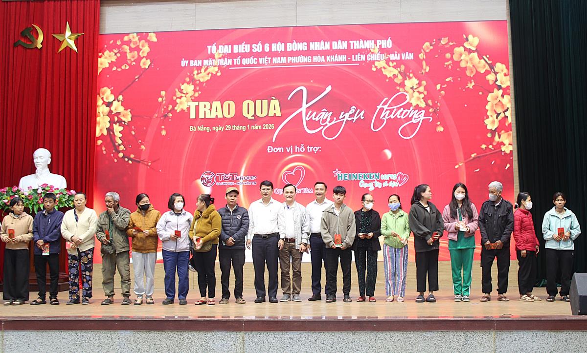 Chiều 29-1, Tổ Đại biểu số 6 HĐND TP Đà Nẵng phối hợp cùng Ủy ban MTTQVN các phường Hòa Khánh, Liên Chiểu, Hải Vân (Đà Nẵng) và các đơn vị đồng hành tổ chức Chương trình trao quà “Xuân yêu thương” - Tết Nguyên đán Bính Ngọ 2026 nhằm sẻ chia, động viên các hoàn cảnh khó khăn trên địa bàn.