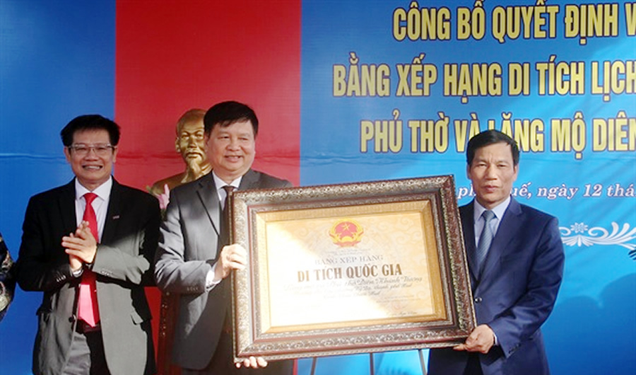 Sáng 12-1, UBND tỉnh TT- Huế tổ chức Lễ đón nhận Bằng xếp hạng Di tích quốc gia của Phủ thờ và lăng mộ Diên Khánh Vương. Bộ trưởng Bộ VH-TT&DL Nguyễn Ngọc Thiện đã đến dự và trao bằng xếp hạng di tích cho lãnh đạo địa phương và gia tộc Nguyễn Phước.