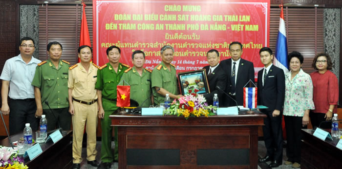 (Cadn.com.vn) - Chiều 14-7, Đại tướng Ruangsak Jritake, Phó Tổng tư lệnh Cảnh sát Hoàng gia Thái Lan cùng Đoàn công tác đã đến thăm và làm việc tại CATP Đà Nẵng. Tại buổi làm việc, thay mặt lãnh đạo CATP, Đại tá Lê Thanh Hải, Phó Giám đốc CATP giới thiệu một số thông tin liên quan đến tình hình phát triển KT-XH, công tác đảm bảo ANCT, TTATXH trên địa bàn thành phố thời gian qua. Đồng thời nhấn mạnh, kể từ khi Việt Nam và Thái Lan thiết lập mối quan hệ ngoại giao vào ngày 6-8-1976 đến nay, quan hệ hai nước được cải thiện và phát triển trên nhiều lĩnh vực.