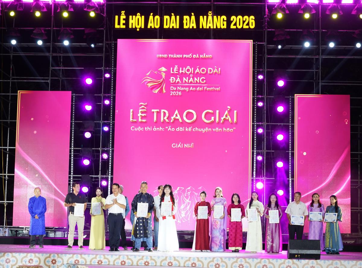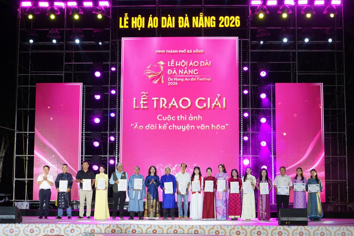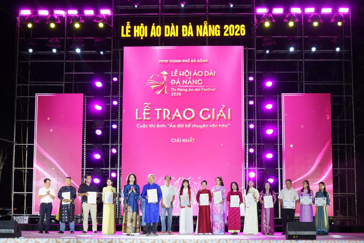 Tối 26-4, UBND phường Hải Châu (TP Đà Nẵng) tổ chức trao giải cuộc thi ảnh “Áo dài kể chuyện văn hóa”. đây là hoạt động đồng hành xuyên suốt Lễ hội Áo dài Đà Nẵng 2026. Chương trình thu hút đông đảo Nhân dân và du khách tham dự.