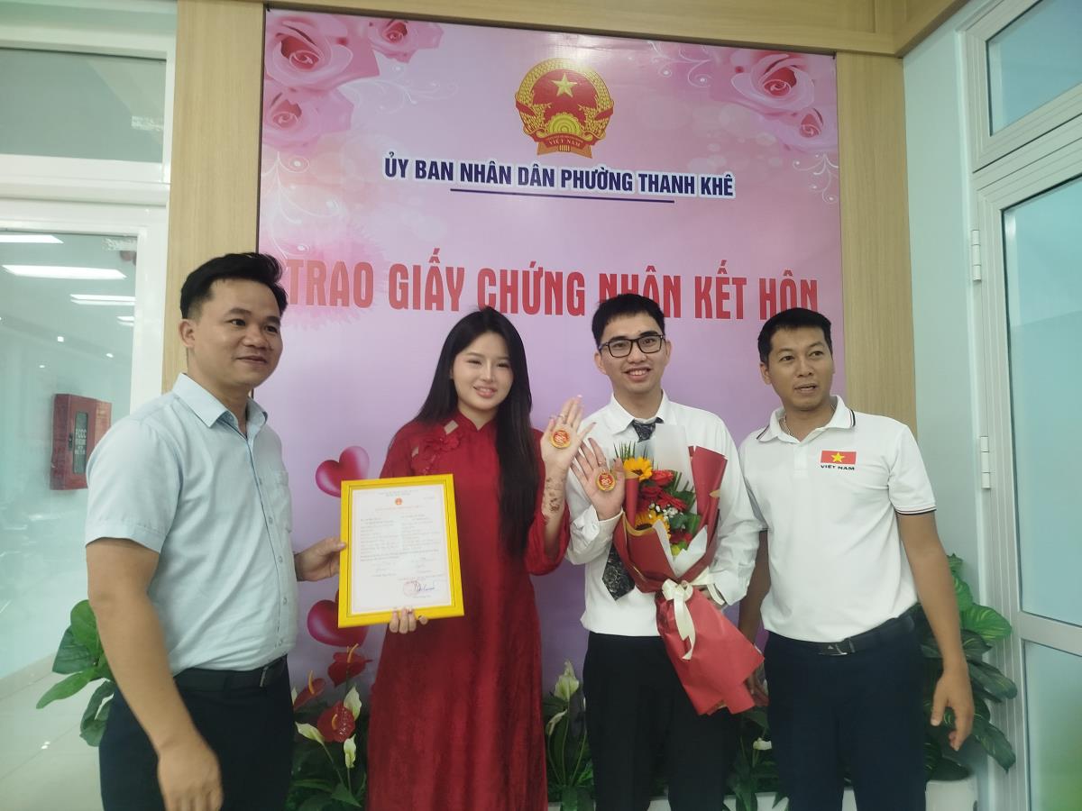 Tại buổi lễ, lãnh đạo phường Thanh Khê và Trung tâm phục vụ hành chính công đã trân trọng trao Giấy chứng nhận đăng ký kết hôn và tặng hoa chúc mừng vợ chồng chị Thái Thị Hoàng Ngân (trú phường Thanh Khê) và anh Wolfrom Velez Michell Kay (Quốc tịch Hoa Kỳ); cặp vợ chồng chị Lê Phạm Ngọc Phương (trú phường Thanh Khê) và anh Lê Trọng Huy, cư trú tại Hoa Kỳ.