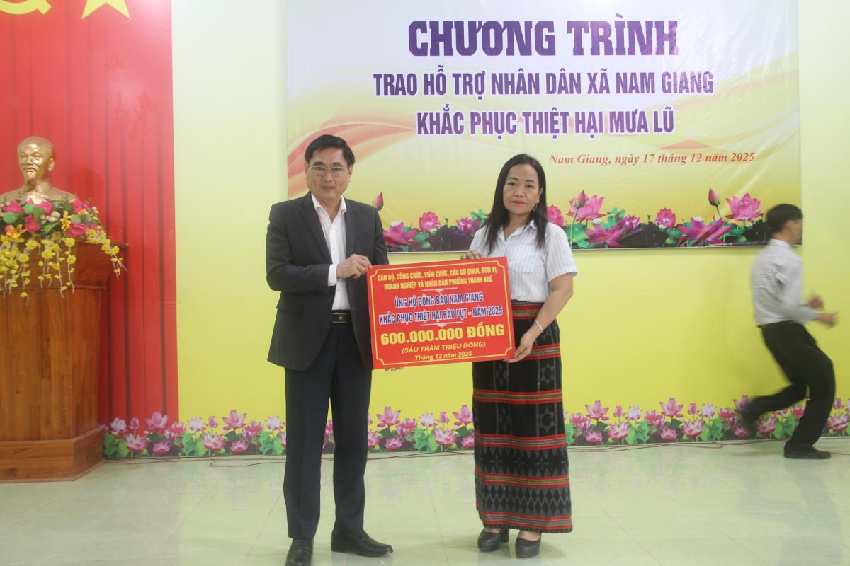 Bí thư Đảng ủy phường Thanh Khê Nguyễn Thành Tiến cho biết, với sự chung tay, góp sức của cán bộ, đảng viên, các tổ chức, doanh nghiệp và nhân dân phường Thanh Khê, địa phương đã trao hỗ trợ cho xã Nam Giang với tổng số tiền hơn 600 triệu đồng nhằm góp phần khắc phục hậu quả thiên tai, ổn định đời sống và sản xuất của nhân dân.