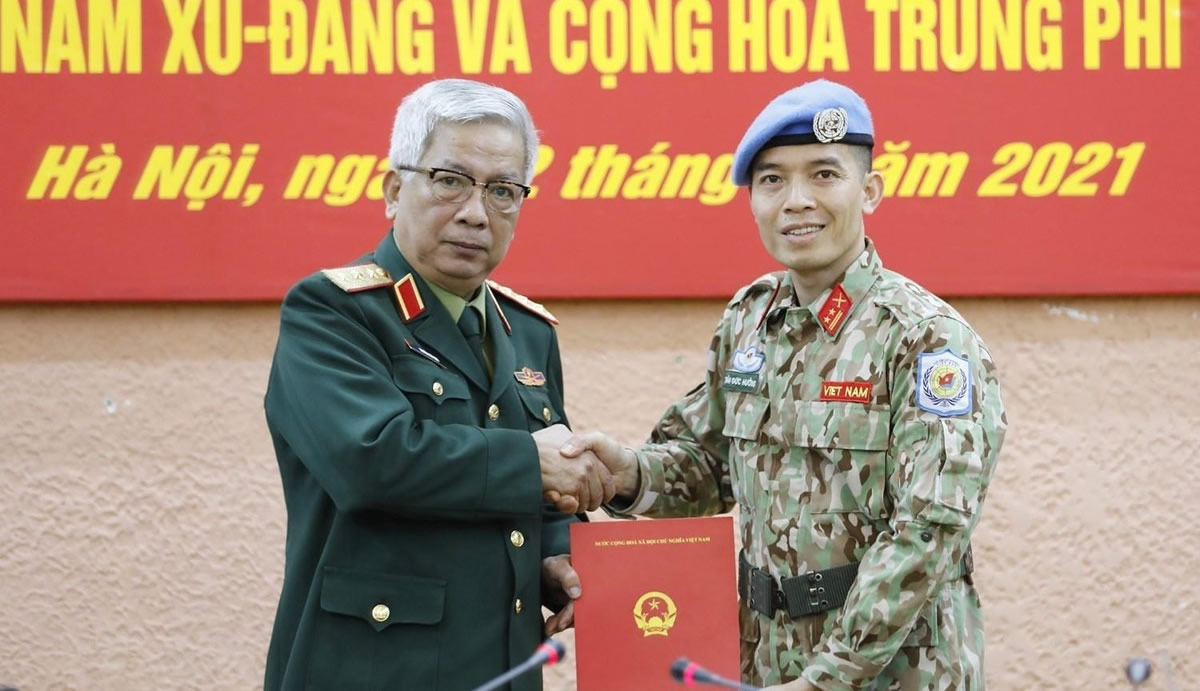 Sáng 12-3, Bộ Quốc phòng tổ chức lễ trao quyết định của Chủ tịch nước cho sỹ quan đi thực hiện nhiệm vụ tại Trụ sở Liên hợp quốc, tổng kết nhiệm kỳ công tác cho các sỹ quan Việt Nam kết thúc nhiệm kỳ tại các Phái bộ Gìn giữ hòa bình Liên hợp quốc tại Nam Sudan và Cộng hòa Trung Phi.