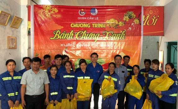 Thành Đoàn Đà Nẵng trao bánh chưng và quà Tết cho công nhân môi trường. |
