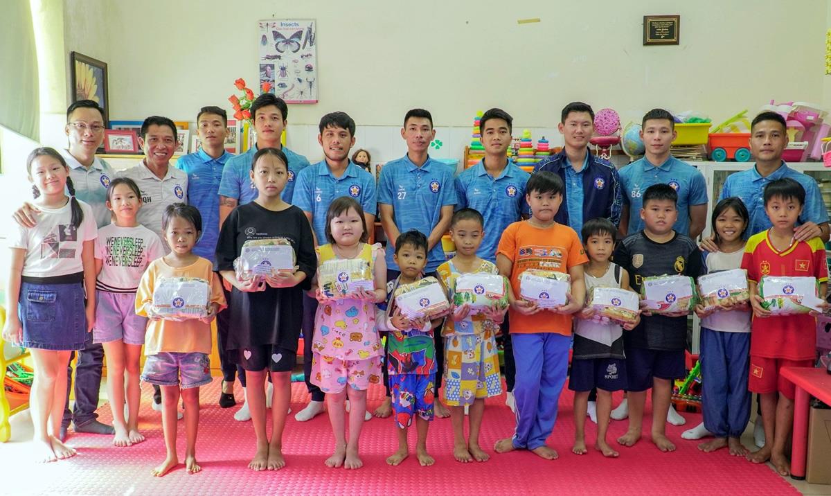 CLB Bóng đá SHB Đà Nẵng vừa tổ chức đến thăm, tặng quà cho các bệnh nhi đang điều trị tại khoa Nhi ung thư của Bệnh viện Phụ sản - Nhi Đà Nẵng. Tại đây, ngoài phần quà bánh, các thành viên Đội 1 của CLB Bóng đá Đà Nẵng đang thi đấu tại Giải Hạng nhất quốc gia mùa bóng 2023-2024 đã trao tặng số tiền khoảng 30 triệu đồng cho các bệnh nhi để các em có thêm kinh phí tiếp tục điều trị bệnh.