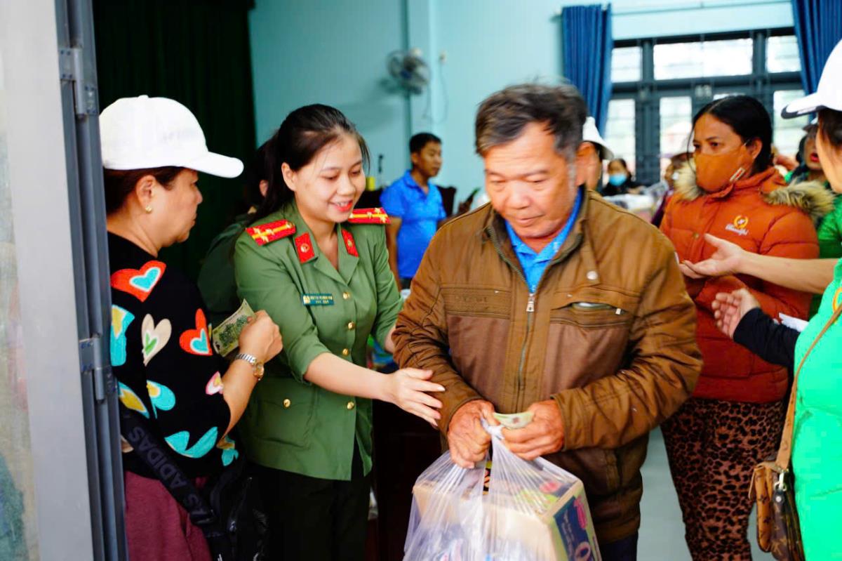Trong khuôn khổ chương trình tình nguyện năm nay, Chi đoàn cơ sở XDLL và Chi hội Phụ nữ cơ sở Cơ quan UBKT Đảng ủy CATP cũng đã đến thôn Trà Lương, xã Phù Mỹ Tây, tỉnh Gia Lai, trao 100 suất quà cho người khiếm thị và người già có hoàn cảnh khó khăn. Mỗi phần quà là sự sẻ chia, lan tỏa tinh thần tương thân tương ái của tuổi trẻ lực lượng Công an thành phố.