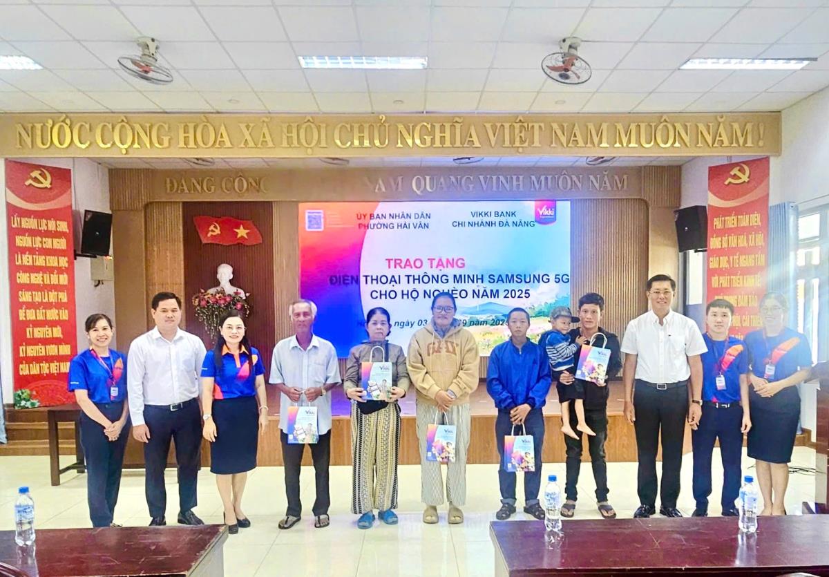 Sáng 3-9, UBND phường Hải Vân phối hợp với Ngân hàng TNHH MTV Số Vikki – Chi nhánh Đà Nẵng tổ chức chương trình trao tặng 05 chiếc điện thoại thông minh 5G cho hộ nghèo, hộ có hoàn cảnh đặc biệt khó khăn trên địa bàn, với tổng trị giá 25 triệu đồng. Nguồn kinh phí do Ngân hàng TNHH MTV số Vikki – Chi nhánh Đà Nẵng tài trợ.