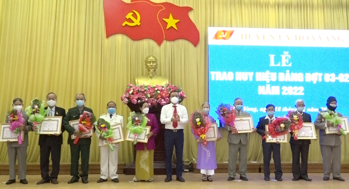ĐÀ NẴNG – Sáng 18-1, Huyện ủy Hòa Vang tổ chức lễ trao tặng Huy hiệu Đảng đợt 3-2 cho 40 đảng viên đang sinh hoạt tại các Đảng bộ trực thuộc. Trong đó, 14 đảng viên nhận Huy hiệu 55, 50 năm tuổi Đảng; các đảng viên còn lại nhận Huy hiệu 45, 40, 30 năm tuổi Đảng. Phát biểu tại buổi lễ, Bí thư Huyện ủy Hòa Vang Phạm Nam Sơn bày tỏ sự trân trọng, biết ơn đối với các đảng viên được nhận Huy hiệu Đảng đợt này đã có nhiều cống hiến cho sự nghiệp cách mạng, góp phần xây dựng và phát triển quê hương ngày thêm giàu đẹp.
