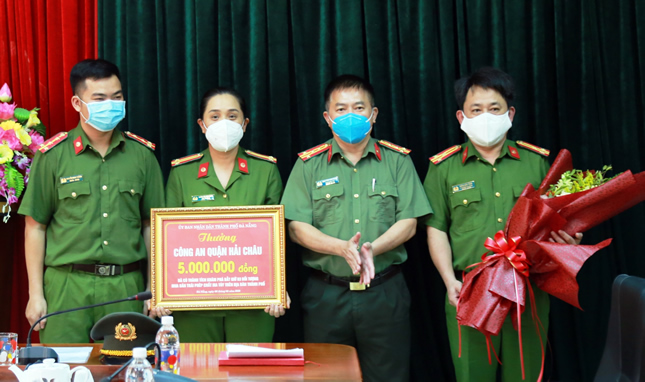 Chiều 2-3, Đại tá Nguyễn Văn Tăng - Phó Giám đốc - Thủ trưởng Cơ quan CSĐT Công an TP Đà Nẵng thừa ủy quyền của Chủ tịch UBND TP trao thưởng cho CAQ Hải Châu về thành tích xuất sắc trong công tác đấu tranh, tấn công trấn áp tội phạm.