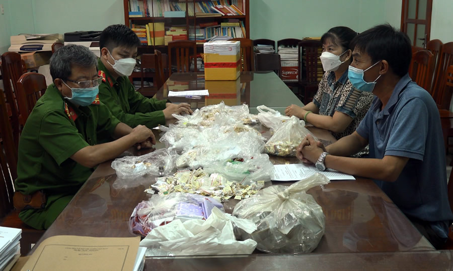 Sáng 8-11, tại Phòng Cảnh sát hình sự- Công an tỉnh Bình Định, Cơ quan CSĐT Công an tỉnh Bình Định đã tiến hành trao trả tài sản là tang vật trong vụ án trộm cắp tài sản xảy ra tại hiệu vàng Anh Trung (P. Tam Quan Bắc, TX Hoài Nhơn, Bình Định). Tổng số lượng vàng và vàng nữ trang các loại đã qua giám định của Viện khoa học hình sự Bộ Công an là 5789,9 gram được người bị hại trong vụ án là vợ chồng ông Nguyễn Anh Trung (1973, trú P. Tam Quan Bắc) kiểm đếm, ký biên bản nhận lại toàn bộ.