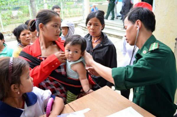 | Quân y đồn biên phòng khám bệnh cho nhân dân vùng biên giới. |
