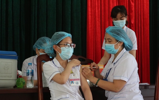 Nhân viên y tế tại TTYT quận Hải Châu được tiêm vaccine phòng COVID-19. |