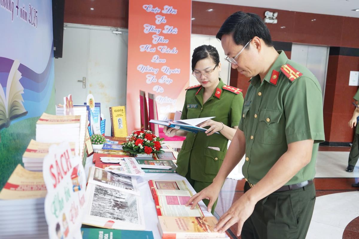 Không gian triển lãm được bố trí 2 quầy sách với nhiều đầu sách hay, giá trị, được xếp thành các mô hình sáng tạo và đẹp mắt. Ngoài ra, Ban tổ chức còn trưng bày các bảng ảnh, standee giới thiệu hoạt động của 4 khối thi đua thuộc CATP và 5 cụm thi đua công an xã, phường, tạo không khí thi đua sôi nổi, thiết thực trong toàn lực lượng.