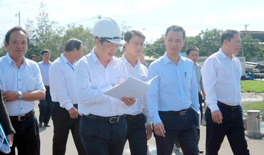 Phó Chủ tịch Thường trực UBND TP Đà Nẵng Đặng Việt Dũng kiểm tra thực tế tình trạng ô nhiễm tại Âu thuyền và Cảng cá Thọ Quang. |