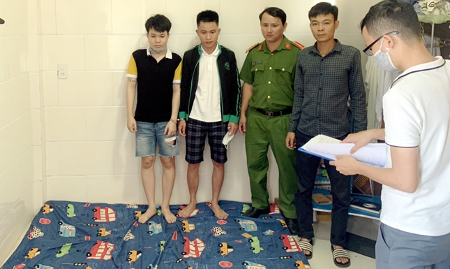 Lực lượng CSHS tiến hành bắt Thắng và Nam (bên trái). |