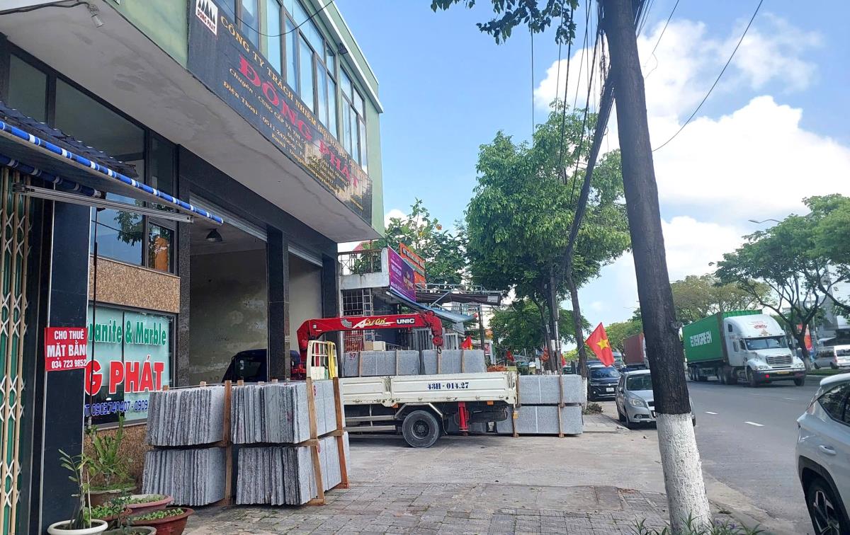 - Chuyện vỉa hè bị chiếm làm nơi tập kết, kinh doanh vật liệu xây dựng đó NXD. Cụ thể, tại địa chỉ số 290-Lê Văn Hiến (phường Ngũ Hành Sơn, Đà Nẵng), Công ty TNHH đá granite Đông Phát ngang nhiên dùng vỉa hè làm nơi tập kết, bày bán các loại đá với số lượng lớn. Điều đáng nói, đoạn vỉa hè trước cơ sở này đã được cơ quan chức năng sơn kẻ vạch nhưng công ty này vẫn tập kết đá, chiếm dụng, chặn hết lối đi. Quan sát thực tế cho thấy khối đá được đóng khung kích thước lớn được dựng thành từng cụm cao ngay trên vỉa hè, kéo dài dọc theo mặt tiền cơ sở. Đá dựng chắn lối, người đi bộ muốn đi qua gần như không còn khoảng trống, buộc phải bước xuống lòng đường để tránh.