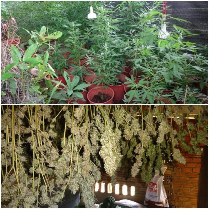 Số cây cần sa đang trồng và đã thu hoạch tại nhà bà Hạnh. |