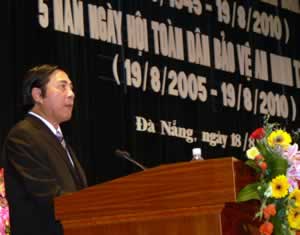 Hôm nay, trong không khí toàn Đảng, toàn dân, toàn quân và các lực lượng CAND sôi nổi thi đua lập thành tích chào mừng kỷ niệm 65 năm Cách mạng Tháng Tám, Quốc khánh 2-9 và hướng về Đại hội Đảng bộ TP Đà Nẵng lần thứ XX, Đại hội Đảng toàn quốc lần thứ XI, Đảng bộ, chính quyền và nhân dân thành phố Đà Nẵng long trọng tổ chức lễ kỷ niệm 65 năm Ngày Truyền thống CAND Việt Nam (19-8-1945 – 19-8-2010), 5 năm Ngày hội Toàn dân bảo vệ ANTQ (19-8-2005 – 19-8-2010), thay mặt Ban tổ chức buổi lễ, tôi xin nhiệt liệt chào mừng các Mẹ Việt Nam anh hùng, các đồng chí lão thành cách mạng, các đồng chí lãnh đạo, quý vị đại biểu và toàn thể các đồng chí đã đến dự buổi lễ trọng thể này.