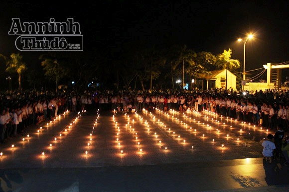 Hơn 1.000 học sinh-sinh viên huyện Lệ Thủy đã tập trung tại sân Trung tâm văn hóa thông tin huyện Lệ Thủy, cùng nhau thắp nến tưởng nhớ Đại tướng Võ Nguyên Giáp - người con của đất mẹ Lệ Thủy (Quảng Bình).