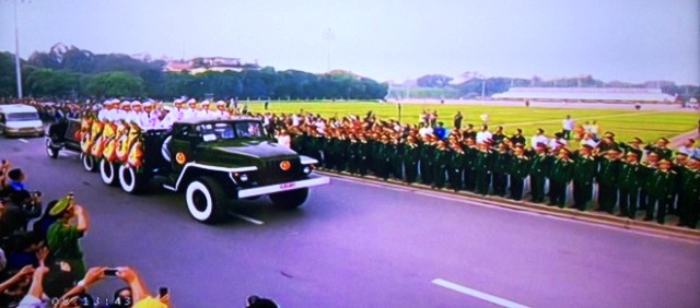 8 giờ15, xe rước linh cữu lăn bánh qua lăng Bác, nơi hàng chục nghìn người đã chờ sẵn và hô vang "Đại tướng muôn năm" trong tiếng nấc nghẹn. |