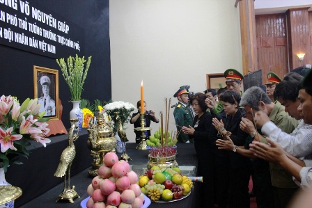 Đêm 12-10 nơi quê hương Đại tướng là một đêm đặc biệt. Ngoài Ban tổ chức Lễ tang địa phương, các đoàn viếng Đại tướng và nhân dân hầu như không ai ngủ, thức với những kỷ niệm, những câu chuyện về cuộc đời và sự nghiệp lẫy lừng của vị anh hùng dân tộc.