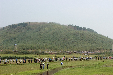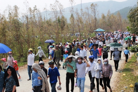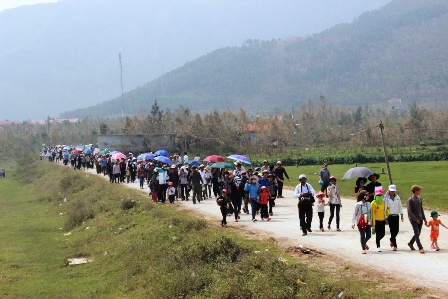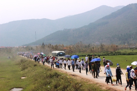 Dòng người đổ về Vũng Chùa lúc 12 giờ, ngày 13-10. |