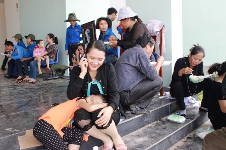 | Một nhóm người từ Thị trấn Kỳ Anh (Hà Tĩnh) đã có mặt ở Vũng Chùa từ sáng sớm, mang theo cơm đùm, cá kho để chờ Đại tướng về. |