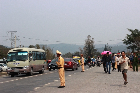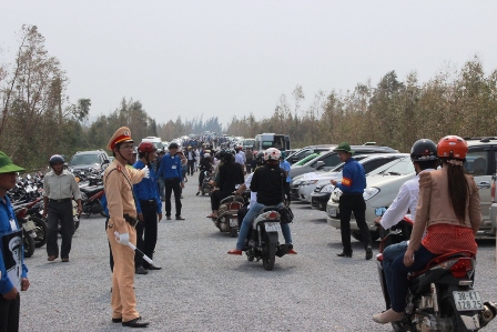 | Lực lượng CSGT phân luồng trên đường xuống Vũng Chùa. |